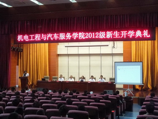9月3日 下午3点 机电工程与汽车服务学院2012届新生开学典礼在北区图书馆报告厅隆重举行。
