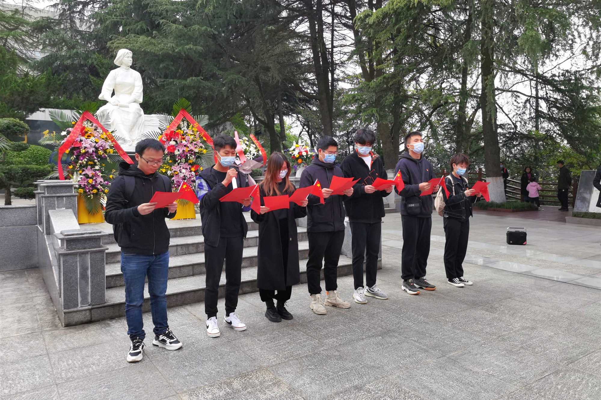 为庆祝建党100周年,进一步推进党建带团建,让广大青年学子在生动实践中学党史,悟思想。4月4日清明节上午,威廉希尔williamhill官网分团委联合学生党支部,特研会和口语传播艺术协会在龟山向警予烈士陵园开展“初心不忘来时路,红色经典青春读”——走读红色经典主题活动,威廉希尔williamhill官网学生党支部书记沈聪和28名学生党团员代表出席,活动由分团委书记向俊主持。
