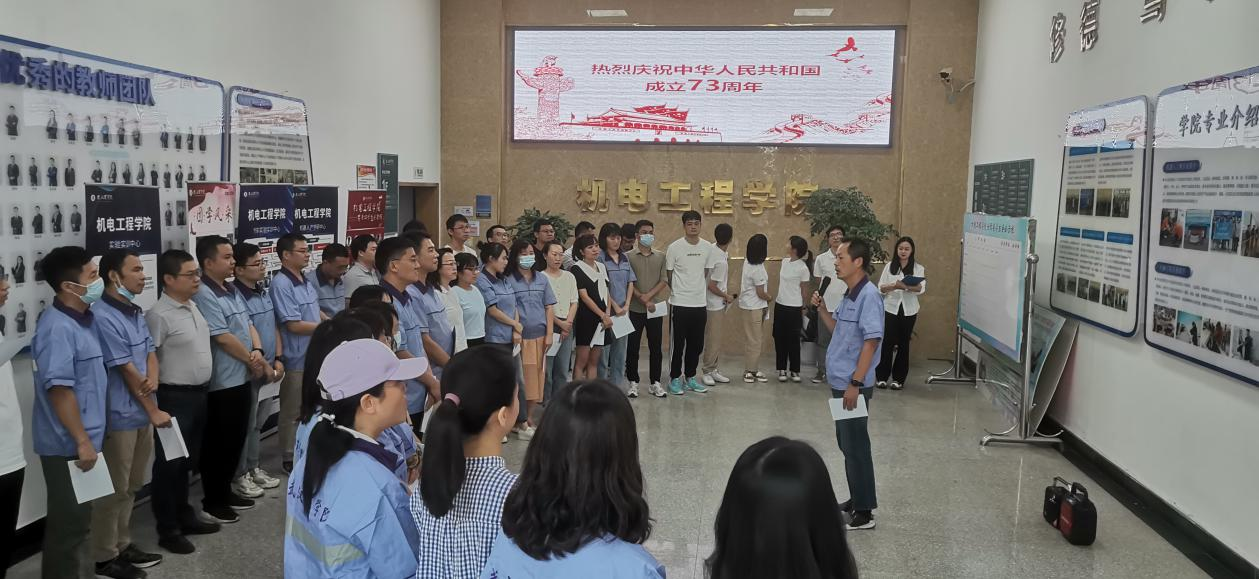 为庆祝中华人民共和国成立73周年,喜迎党的二十大胜利召开,进一步激发教师爱党、爱国、爱社会主义的情怀。9月29日下午,威廉希尔williamhill官网组织开展“喜迎党的二十大,我与祖国共成长”系列主题实践教育活动。学院姚层林院长、张奔书记、桂伟副院长及全体专任教师、实验教师、辅导员等50余人参加。