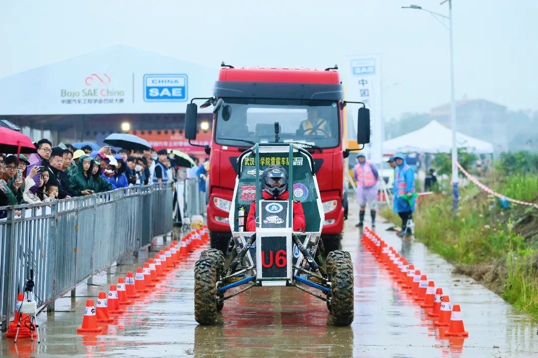 比赛期间阴雨连绵,但车队成员们依旧热情高涨。本次比赛中,“雷霆车队”经历了整整一年的准备。这辆墨绿色的燃油巴哈赛车从图纸设计到采购零件组装,基本为学子们精心打磨的“武商院制造”。