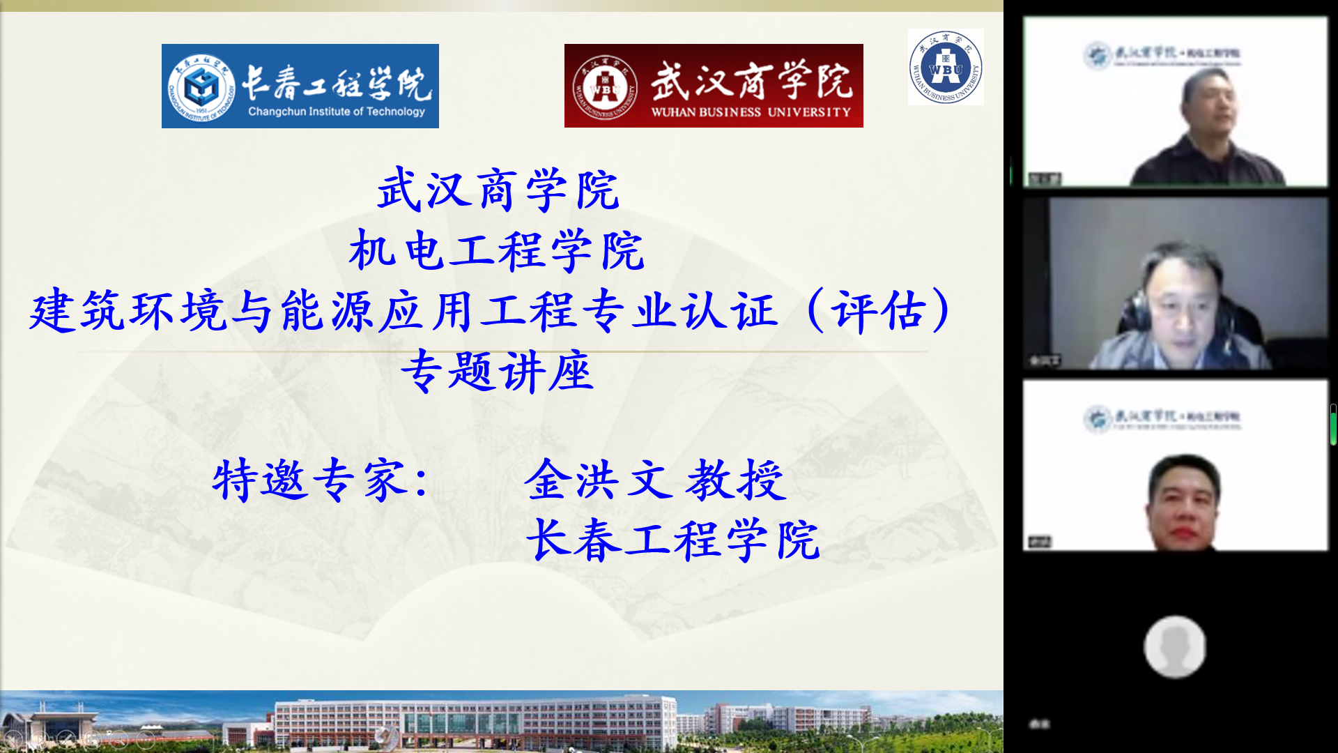 2023年3月7日,长春工程学院国际教育学院院长,建筑环境与能源应用工程专业金洪文教授应邀与威廉希尔williamhill官网在线上开展了建筑环境与能源应用工程专业评估(认证)的专题讲座。学院姚层林院长、建环专业全体老师参加了此次讲座并进行了交流,讲座由建环专业负责人胡云鹏老师主持。