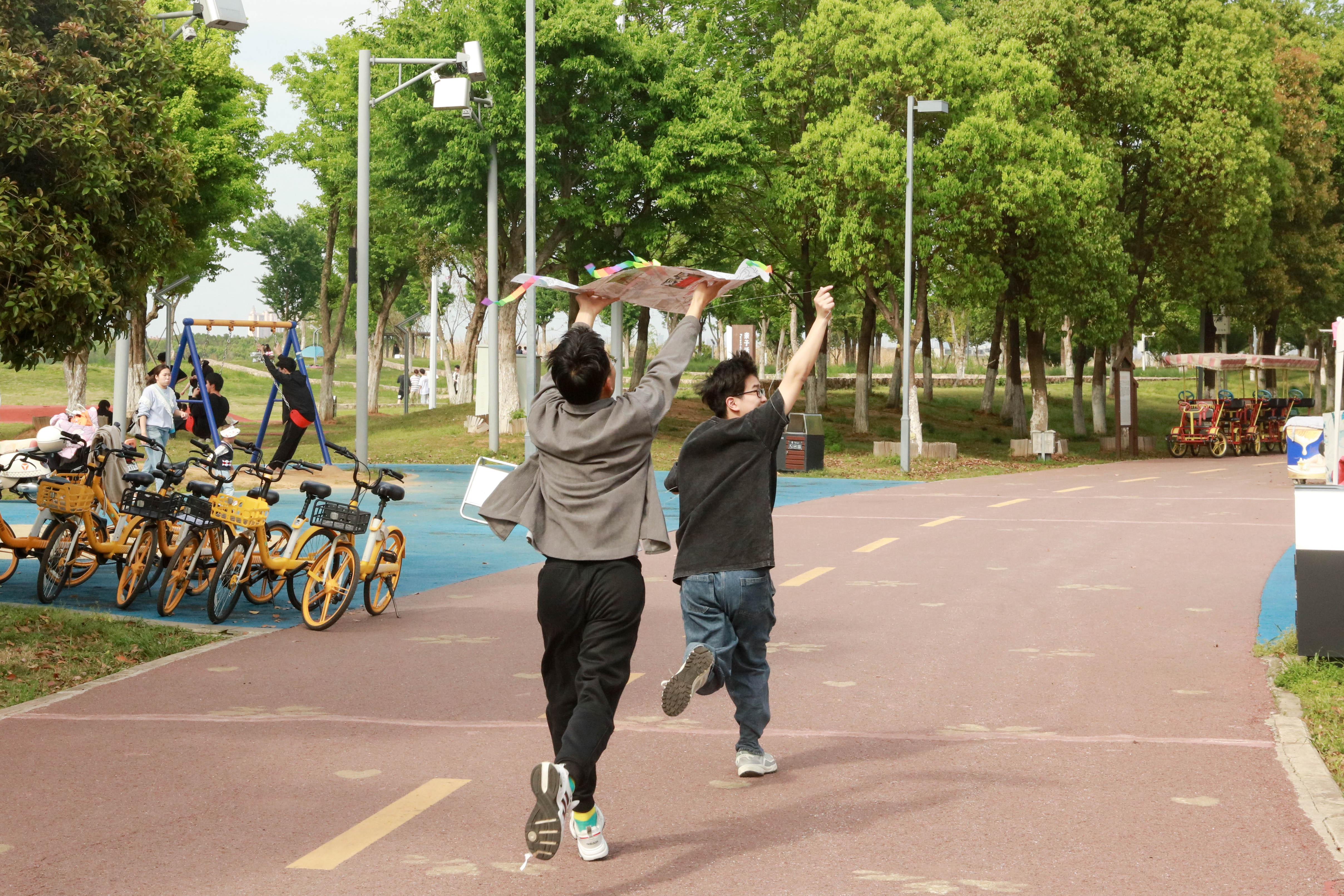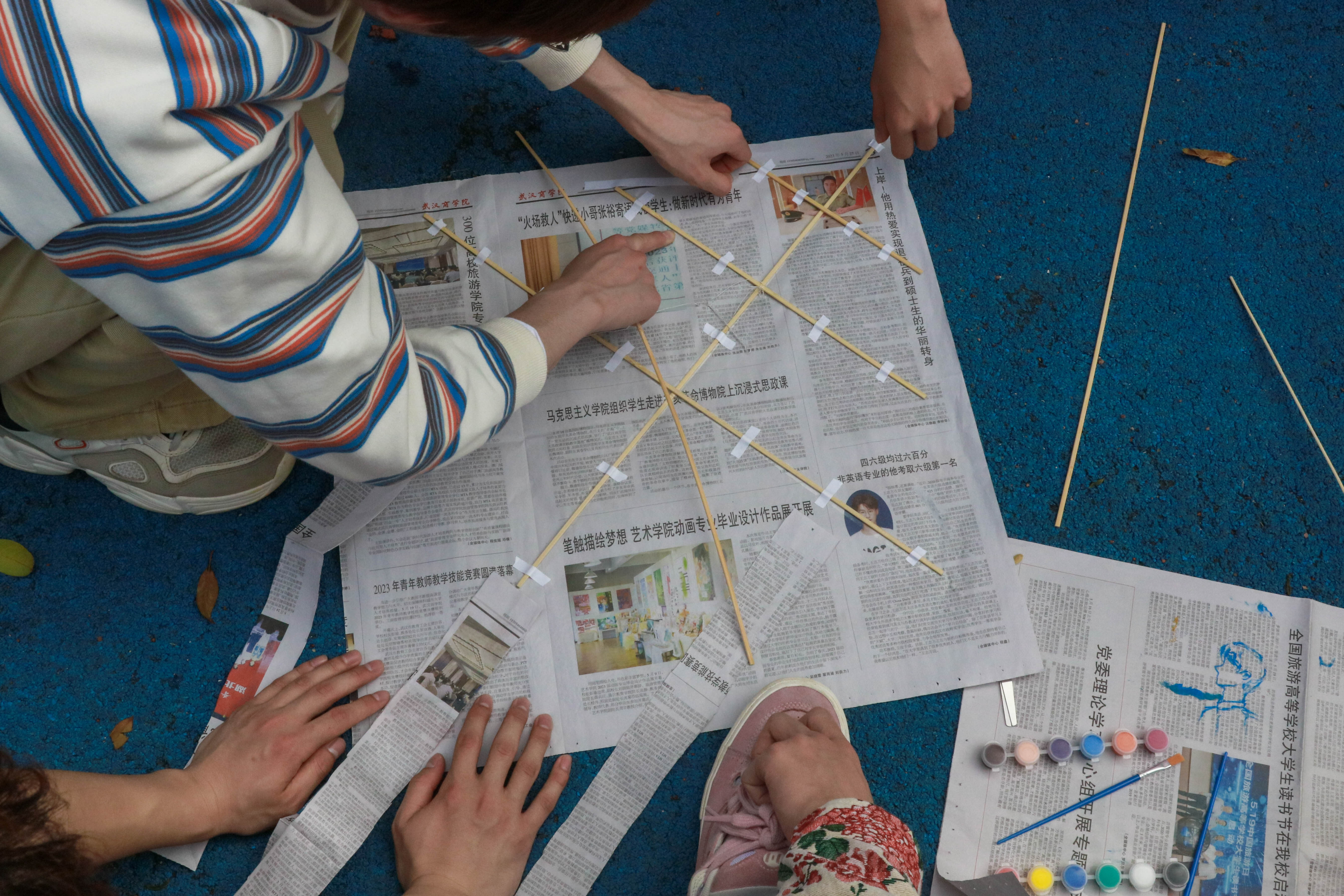 本次活动可以用旧报纸制作风筝或亲手彩绘风筝。制作风筝首先要考虑的是风筝骨架的扎制,同学们先用木条搭好骨架,再把旧报纸裁剪至合适的形状后粘贴在搭好的骨架上,最后系上线和弓弦,一个牢固的风筝便初见雏形。“排布骨架时要注意给风筝留出泄风的风兜,有利于风筝稳定放飞。”2023级威廉希尔williamhill官网建筑环境与能源应用工程专业何一鸣分享说。动作创意彩绘风筝DIY是在原有的风筝艺术上创新,让风筝重新焕发生机,同学们充分发挥想象力与创造力,一笔一划将心中的色彩与想象跃然风筝之上。色彩斑斓的风筝搭配流畅的线条,不一会儿,同学们便做出了属于自己的风筝。随着一只只风筝的完工,大家都迫不及待来到草地里,三三两两相互合作,兴致勃勃地把手中的风筝放飞蓝天。同学们手握轴线,一路小跑,时而拉线放线,时而前后轻抖,精确控制着风筝升空的速度和放飞的高度。