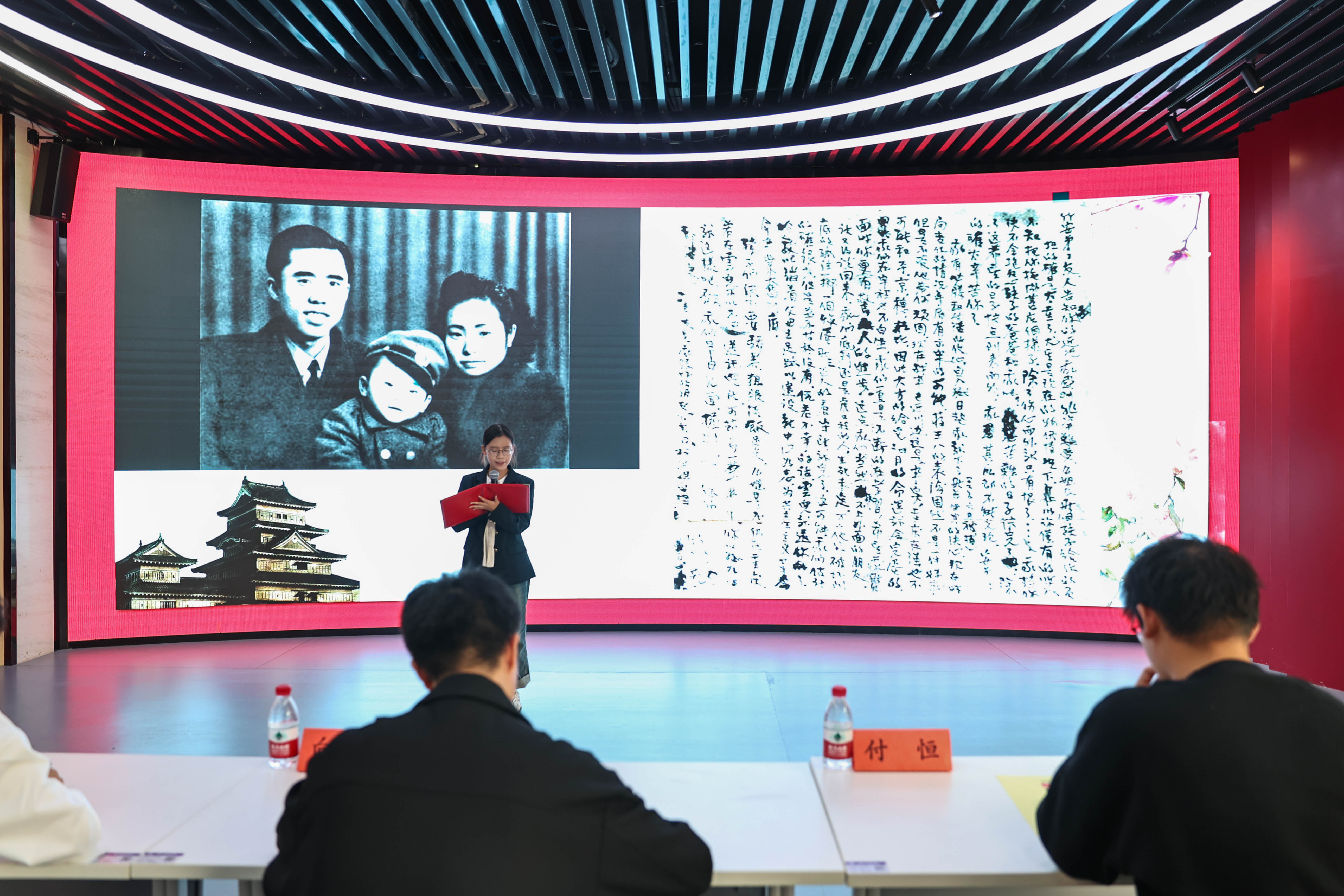 活动伊始,气氛热情高涨。首先第一项议程朗诵环节,参与者们声情并茂地诵读着一篇篇经典的红色文学作品。无论是亲切坚定的《史砚芬写给弟妹的诀别信》,悲壮慷慨的《江姐托孤信》,还是遗憾又坚毅的《写给宁儿的一封信》,柔情又饱含家国大义的《给妻子的一封信》,亦或是就又豪迈的《给母亲的信》,朗诵者的声音如滚滚惊雷,在观众耳边炸响,那是先辈们的呐喊。他们用富有感染力的声音,将观众带回了那个战火纷飞却又激情燃烧的年代,让红色记忆如画卷般在人们眼前徐徐展开。每一个音节、每一次语调的起伏,都精准地传达出作品中的情感,令在场观众无不沉浸其中,或热血沸腾,或热泪盈眶。朗诵者们以声音为画笔,生动地勾勒出红色记忆的轮廓,使这些记忆仿佛从历史长河中跃然而出,矗立在人们心间,实现了文字从躺下到战立,动人心魄。