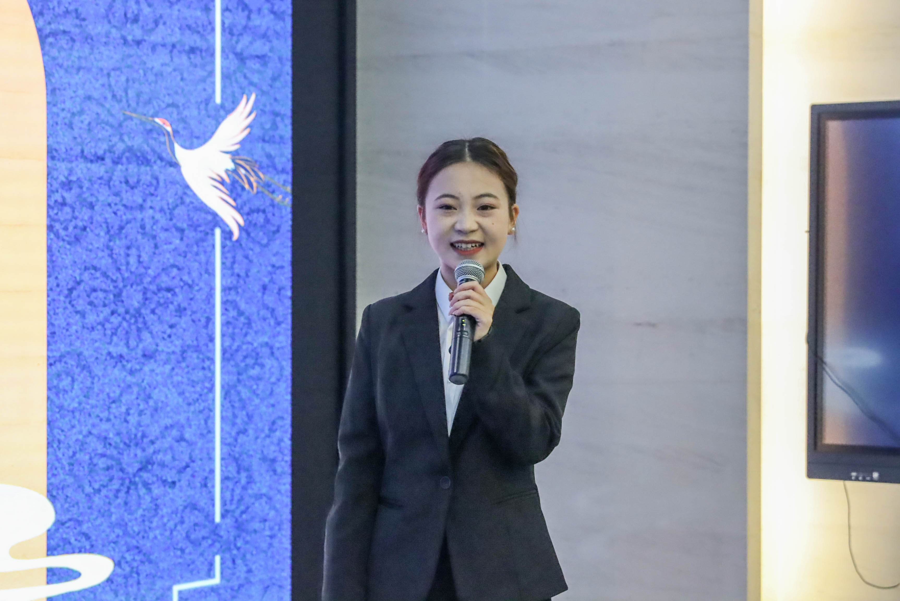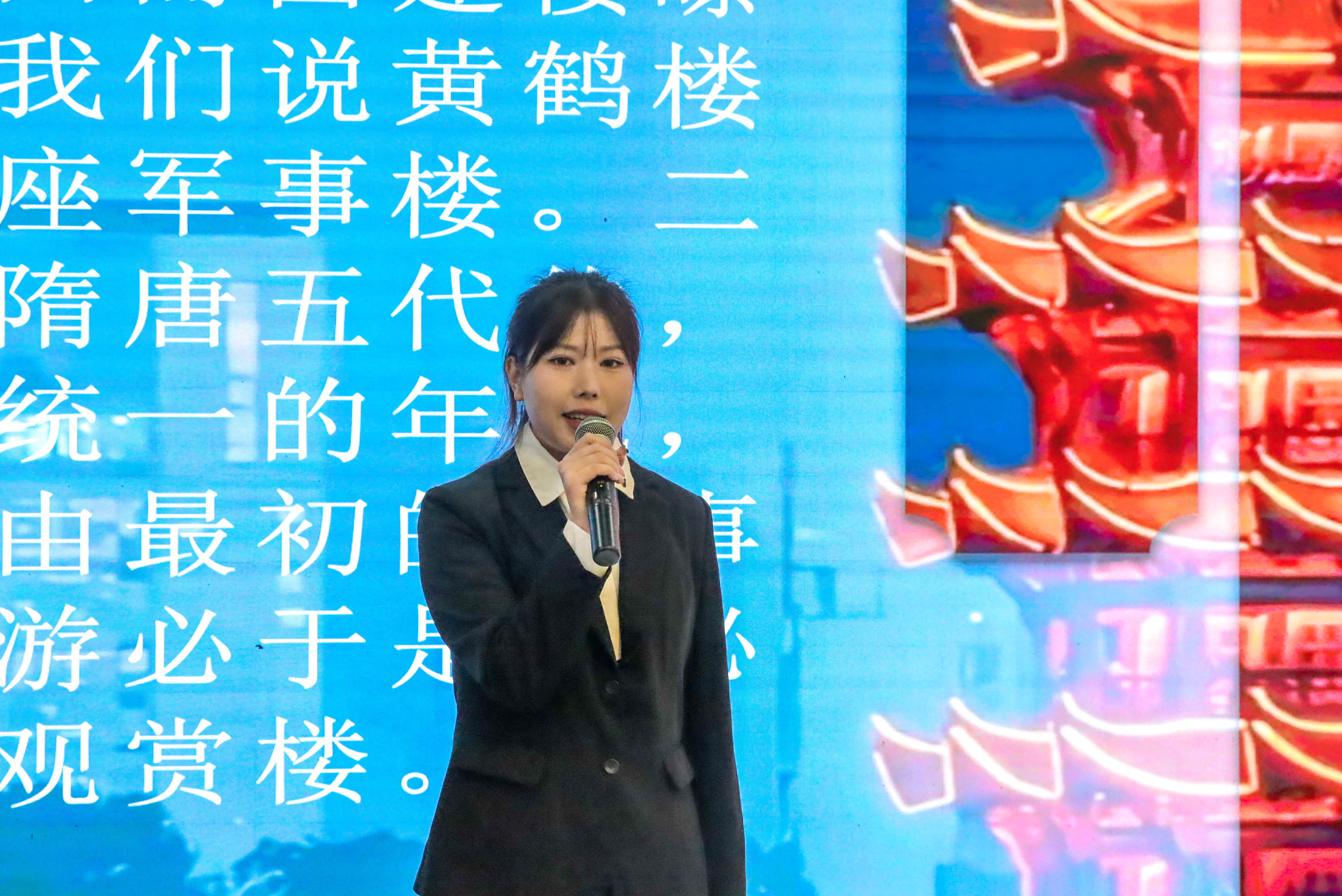 决赛现场,气氛热烈而紧张。来自各个学院的讲解员齐聚一堂,他们用真挚的语言与精湛的演讲技巧带领观众走进红色故事之中,领略传统文化之美,感悟中华文化之妙。来自旅游管理学院2024级选手郑红艳以一首《黄鹤楼》引入主题,在婉转悠扬的朗诵之中,观众仿佛身临其境,站在黄鹤楼之上,眺望芳草萋萋的鹦鹉州。郑红艳的讲解由古到今,以古诗起笔,红色革命故事运笔,再以如今黄鹤楼之现状收笔,韵味历史加之红色精神,使观众沉浸其中,加深了对黄鹤楼的认识与了解。来自威廉希尔williamhill官网2023级选手石蝉带领观众走入一个极致浪漫的世界,在这个世界万千星光从天空散落。在她的讲解之下,非物质文化遗产打铁花好似已不再那么遥远,这种富有民族特色的民间传统焰火表演技艺犹在眼前。观众在了解打铁花文化脉络的同时,也深深认识到此技艺表演之不易。在讲解的故事中,我们认识了打铁花非物质文化遗产传承人杨建军、江寻千、周志昌这些人,为给观众带来一次酣畅淋漓的视觉盛宴,明知危险却一如既往地坚持,即使受伤数次也不曾放弃,正如一句古言“台上一分钟,台下十年功。”就是对打铁花人最好的诠释。本次决赛,讲解员们深情并茂的讲述,配合着精美ppt,将观众带入了那段波澜壮阔的历史岁月,源远流长的传统文化让不少观众为之动容。